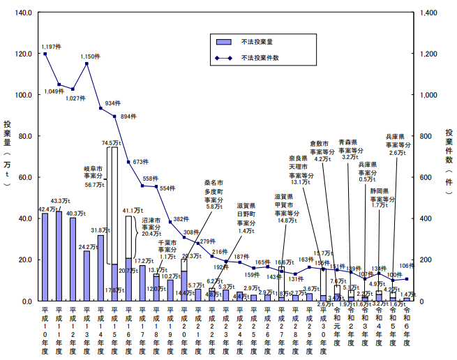 出典:不法投棄件数及び投棄量の推移_環境省資料